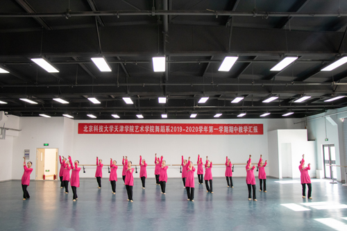 11月19日上午10:30,藝術學院舞蹈系第一學期期中教學匯報在舞蹈系排練廳隆重開幕,出席的領導有北京科技大學天津學院院長王斌,學術委員會主席宋存義,教務處長張建華,藝術學院院長胡寶嘉,舞蹈系主任靳苗苗,藝術設計系主任孟慶田,藝術學院黨總支書記、副院長林碧蕓,藝術教育中心主任韓程羽。