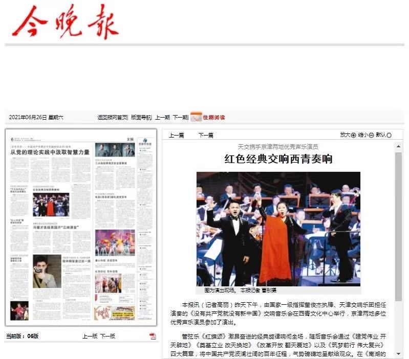 慶祝建黨100周年期間,鮑老師作為主要演員還參加了由市委宣傳部、市委黨校、各區縣單位主辦,天津交響樂團承辦的“沒有共產黨就沒有新中國”大型交響合唱音樂會;濱海新區總工會和濱海文投公司聯合出品的“紅色記憶”慶祝中國共產黨成立100周年大型音舞詩畫等近20余場黨慶演出,用扎實的唱功,成熟穩重的舞臺表演謳歌黨,謳歌時代。