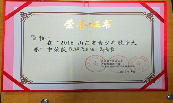 金沙城js93線路檢測中心藝術系2013級學生簡艷榮獲“2016山東省青少年歌手大賽”民族專業組新秀獎