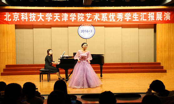 2016年3月30日,19:00時,北京科技大學天津學院藝術系優秀學生匯報展演在12教學樓弘藝音樂廳舉行。