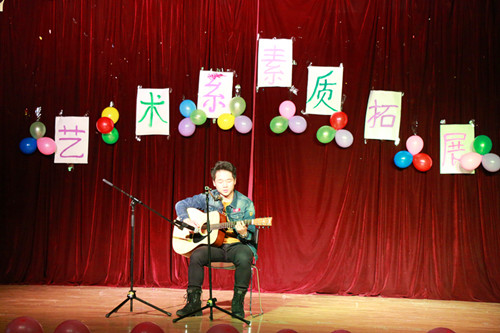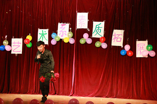 在幾項游戲過后,進行了一個調整迎接下面的比賽,藝術系張鈐陽、秦驊等同學的深情演唱將整個活動氣氛推向了高潮。