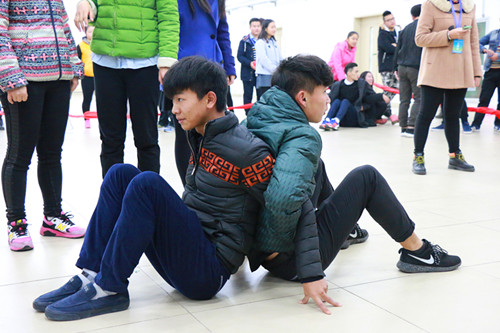 本次素質拓展活動以小組為單位開展活動,共設置了“氣球對對碰” “坐地起身” “搶板凳” “銜紙杯傳水” “瞎子背瘸子” “趣味接力”六個非常具有創意的比賽項目。活動過程也充滿了歡聲笑語,處處可以感到團隊合作的力量。在藝術系15級學生周俊良和陳雪精彩的開場白后,本次活動正式拉開帷幕。