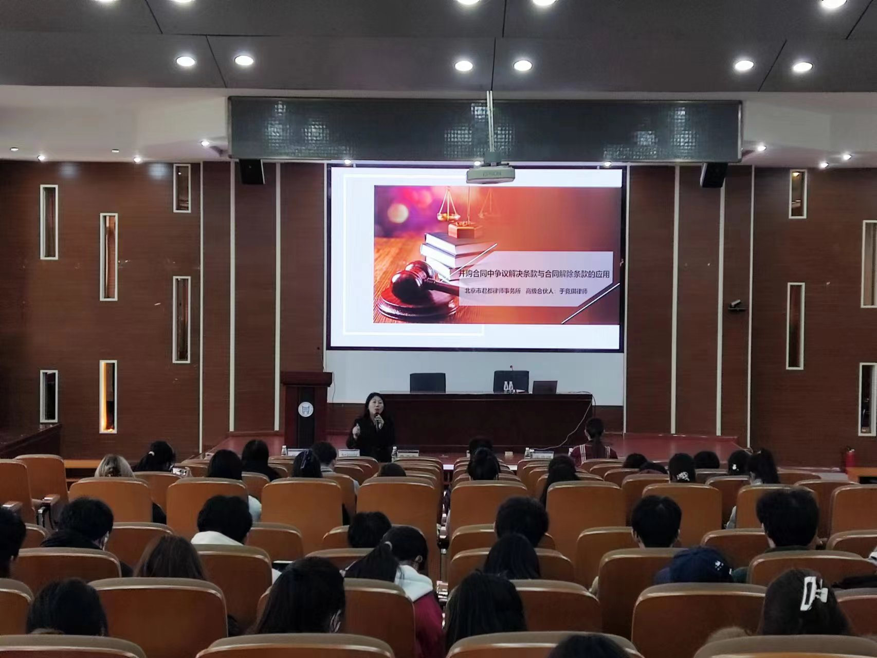 聘任儀式結(jié)束后,于競(jìng)琪教授為師生們帶來(lái)題為“并購(gòu)合同中爭(zhēng)議解決條款與合同解除條款的應(yīng)用”的實(shí)務(wù)專(zhuān)題講座。講座由法律系主任朱京安教授主持,王超副教授擔(dān)任與談嘉賓,法律系師生共同聆聽(tīng)了這場(chǎng)講座。