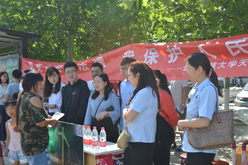 對此,為了滿足城鎮居民對法律法規知識的需求,加強居民法制意識,提高人民群眾的維權意識,為人們現實生活中遇到的實際法律問題打下良好的基礎。5月14日早晨8:30,天津市寶坻區人民法院、法律系狴犴法律咨詢室、法律系學生黨支部、法律系分團委學生會在周良勸寶超市門口聯合舉辦“送法下鄉”活動。為人民群眾普及法律知識、進行公益咨詢。