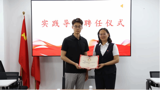 李文一主任向受聘校外實踐導師張紅主任頒發實踐導師聘書。