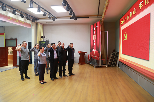 外國語學院教工黨支部開展讀黨史心得體會交流和重溫入黨誓詞活動?;顒又校w黨員分小組閱讀黨史經典,撰寫心得體會,并集體討論分享,在黨支部書記的帶領下,面向黨旗宣誓,重溫入黨誓詞。