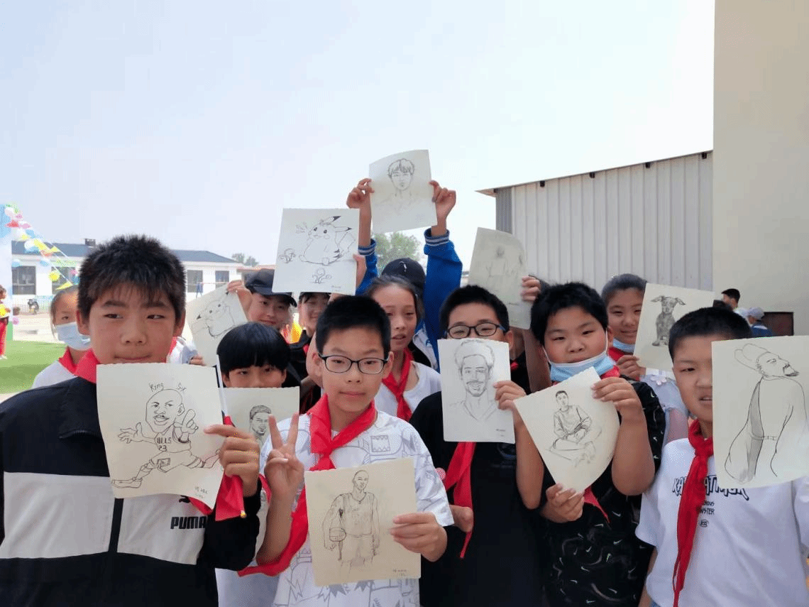 藝術設計系王子帥同學為每位五年級學生送上一幅畫