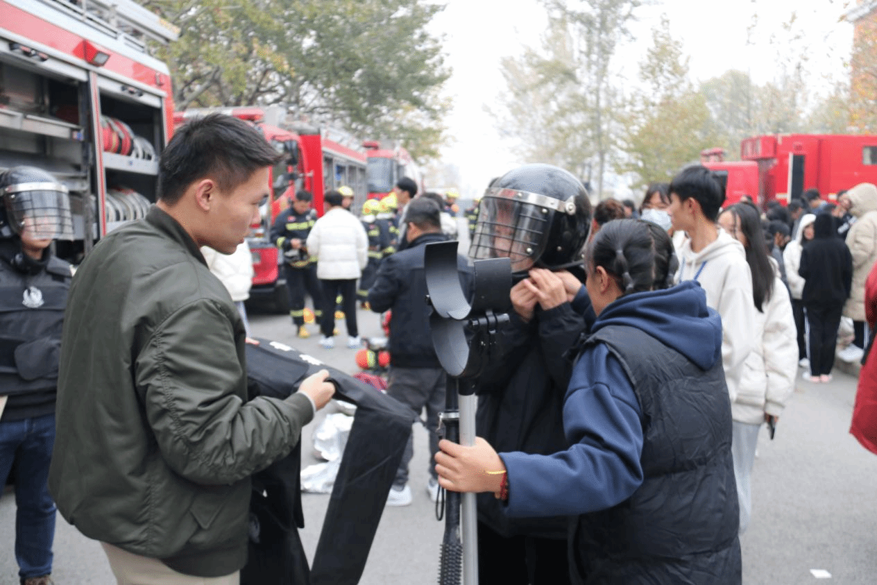 11月15日,學(xué)院聯(lián)合新城消防救援站和派出所,在學(xué)院小廣場(chǎng)前和理工館消防通道,分別開展反詐簽名和消防應(yīng)急救援裝備展示體驗(yàn)活動(dòng)。一方面,通過發(fā)放消防、反詐安全宣傳單,組織同學(xué)們參與校園防火和防范網(wǎng)絡(luò)電信詐騙簽名活動(dòng),深化普及防范反詐和校園生活消防安全常識(shí);另一方面,讓同學(xué)們深入體驗(yàn)消防救援裝備和公安防暴裝備,從“聽我講”到“我試穿”、“我試用”,轉(zhuǎn)變安全宣傳思路和宣傳方式,增添宣傳活動(dòng)趣味性,激發(fā)廣大學(xué)生群體參與安全宣傳,學(xué)習(xí)安全知識(shí)的積極性和主動(dòng)性。