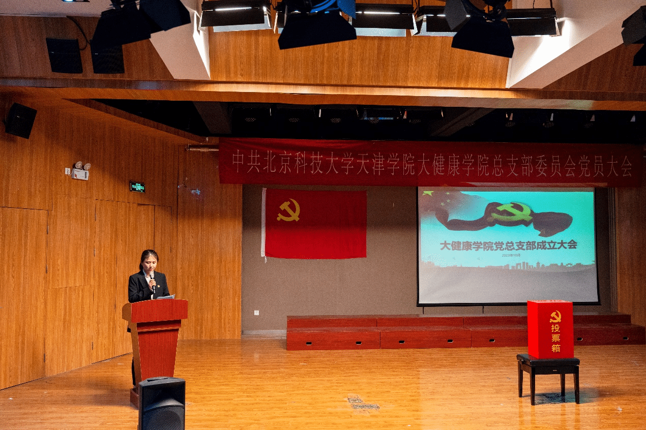 經(jīng)北京科技大學(xué)天津?qū)W院黨委批準,大健康學(xué)院黨總支成立大會于10月11日在弘藝音樂廳順利召開,舉行第一屆黨總支選舉工作。北京科技大學(xué)天津?qū)W院黨委副書記栗時鋒同志和院長助理、學(xué)術(shù)委員會主席宋存義同志出席本次會議。會議由王堃同志主持,全體黨員參會。