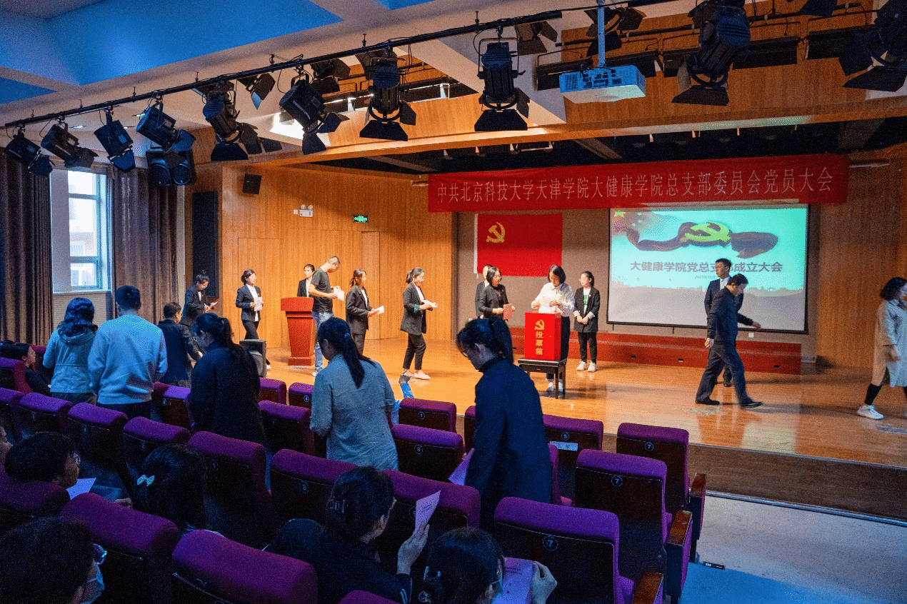 隨后,大會審議通過了《北京科技大學(xué)天津?qū)W院大健康學(xué)院黨總支部黨員大會選舉辦法》、監(jiān)票人及計票人、委員會候選人名單。在監(jiān)票人鄭澤澤同志的主持下,按照選舉程序,與會正式黨員以無記名投票方式,差額選舉產(chǎn)生王剛、王堃、邢冬婕、李貝貝、趙慧敏5位同志為第一屆大健康學(xué)院總支部委員會委員。