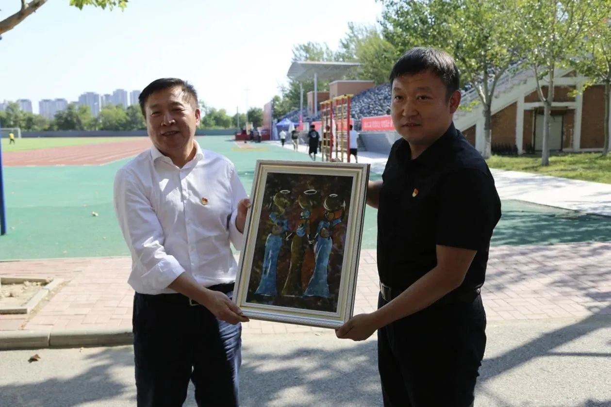 王赫明局長向?qū)W院贈(zèng)送禮物,北京科技大學(xué)副校長王魯寧代表學(xué)院接受贈(zèng)禮。