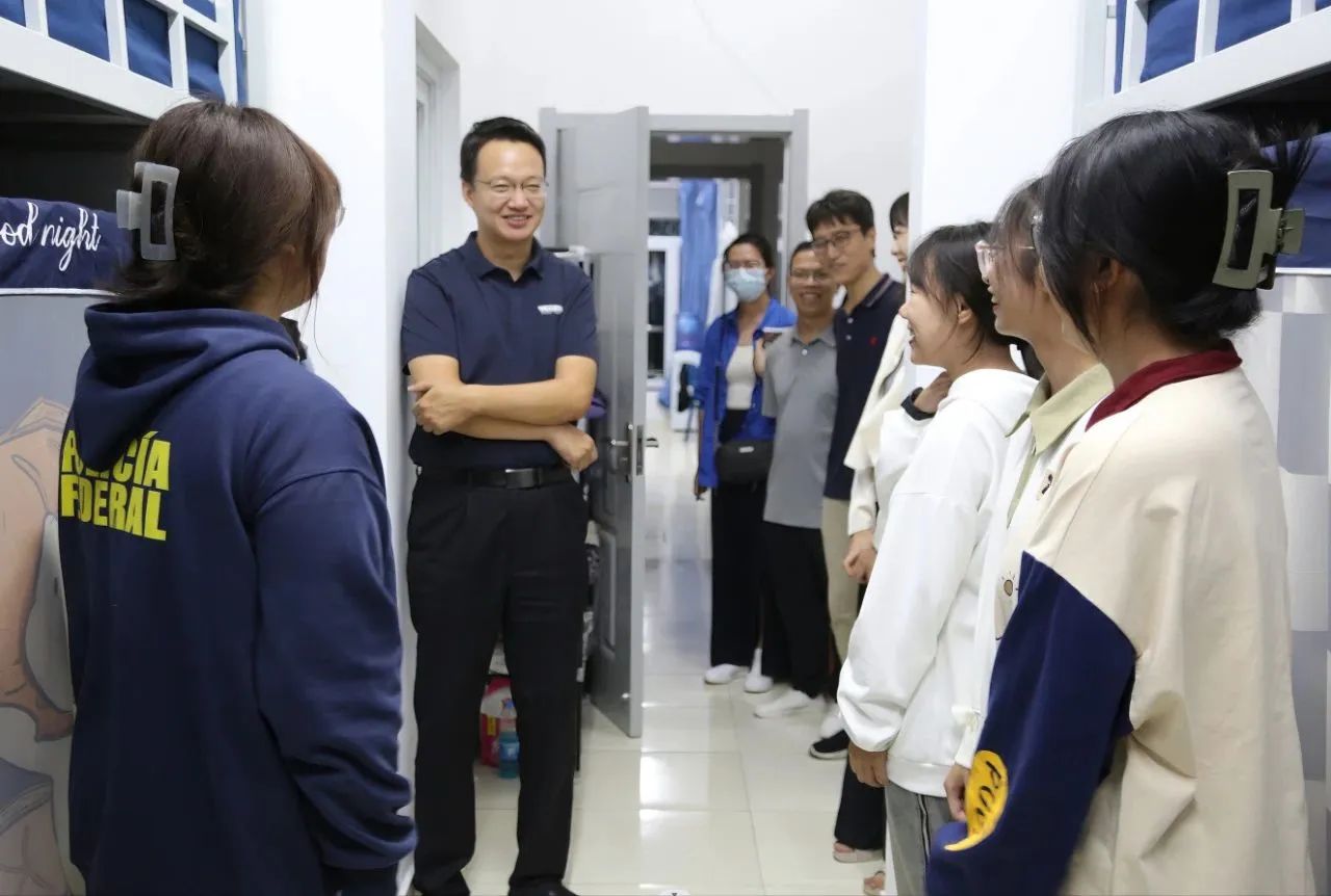 在新生宿舍,學院領導與新生進行了親切交談,詳細詢問了他們來到學校后的適應情況以及對住宿和生活環(huán)境的感受。學院領導表達了對新生的殷切期望,希望同學們能夠盡快適應從高中到大學的角色轉變,學會獨立生活和自主學習,并盡快融入豐富多彩的大學生活。