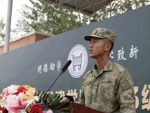 來(lái)自城市建設(shè)學(xué)院工程造價(jià)專業(yè)的張普星作為退役復(fù)學(xué)大學(xué)生教官代表上臺(tái)進(jìn)行表態(tài)發(fā)言,全體教官將履行教官職責(zé),嚴(yán)格按綱施訓(xùn);發(fā)揚(yáng)優(yōu)良作風(fēng),樹(shù)立良好形象;鞏固軍訓(xùn)成果,提升國(guó)防意識(shí)。