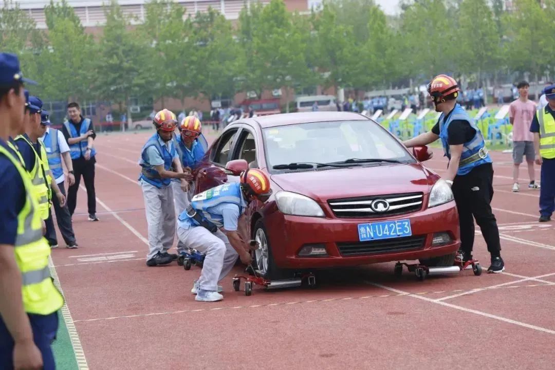 本次競賽共設置單位企業隊、農村微型消防站2個參賽類型,精心設置一人兩盤水帶連接、更換水帶、搬運重物接力、移車器定點移車、消防車出水打靶5個項目,廣泛吸引來自各街鎮、工業園區的83支代表隊,540余人參加本次大賽。學院精心挑選精干消防力量參加單位企業類消防技能競賽,參賽隊員奮勇爭先全力拼搏,展現出良好的專業素養和昂揚的精神面貌。