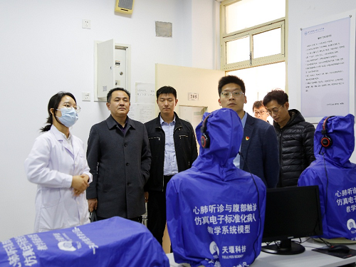 座談會前,盧希元局長一行參觀了學院護理學專業實驗室和北科大共建實驗室,對學院教育教學條件建設水平以及校企合作、應用型人才培養表示充分肯定。