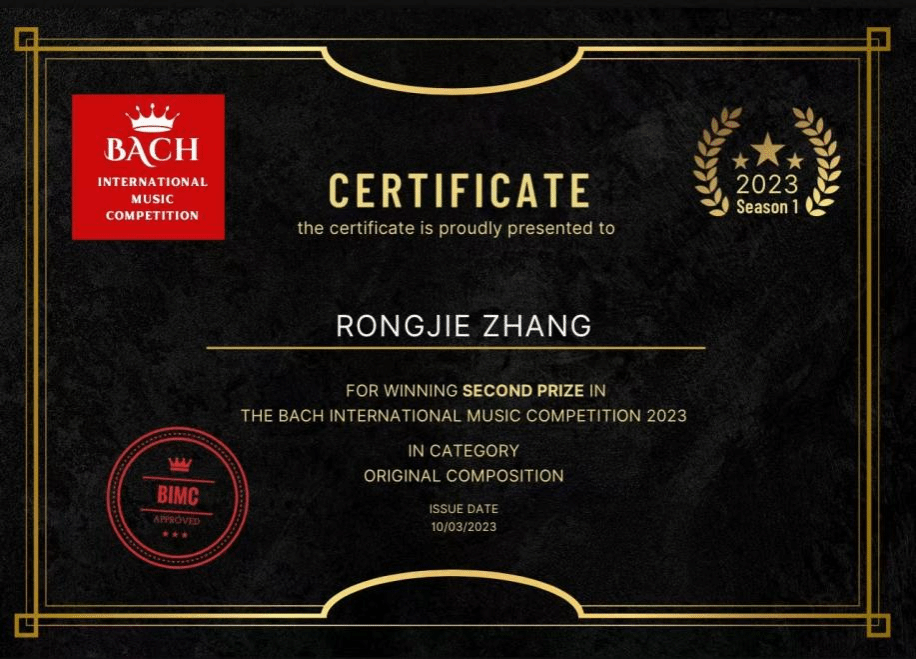 近日,2023年德國“巴赫”國際音樂比賽(Bach International Music Competition)結果公布,我校藝術學院音樂系計算機作曲專業(yè)18級學生張榮杰,以畢業(yè)作品木管八重奏《Little Knight》參賽榮獲作曲組二等獎,指導教師張倚赫。
