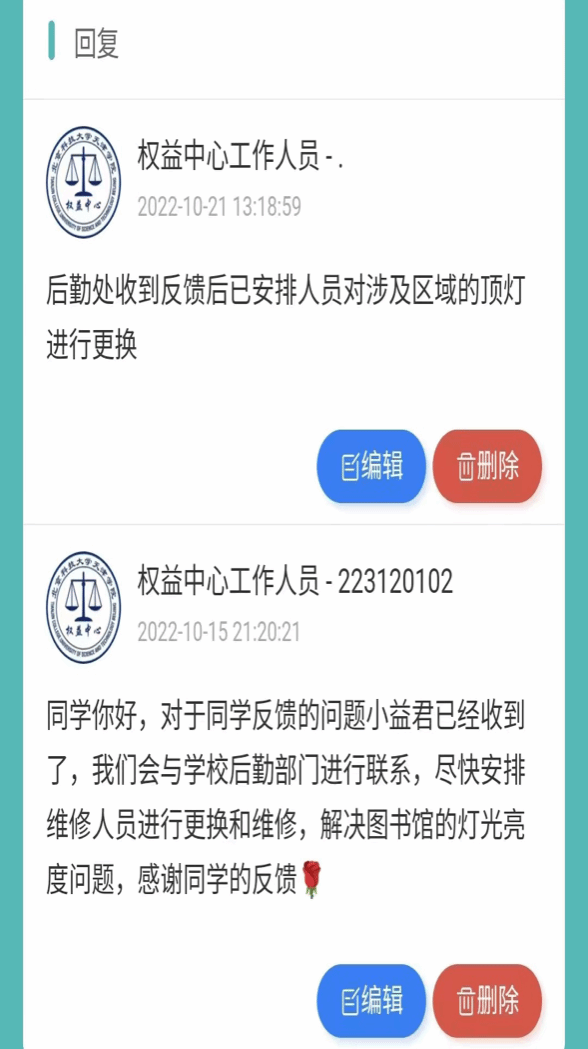 我校學生會“我為同學做實事”項目以權益中心平臺為抓手,平臺共設置食堂、教學等四個板塊,建立常態化工作機制,即24小時之內確認收到學生反饋——48小時之內與學院涉及部門溝通協調解決——解決之后24小時內進行電話回訪確認問題解決滿意度,形成一個良性工作閉環機制,切實解決學生在校期間的衣、食、住、行、學等貼近學生實際的訴求。