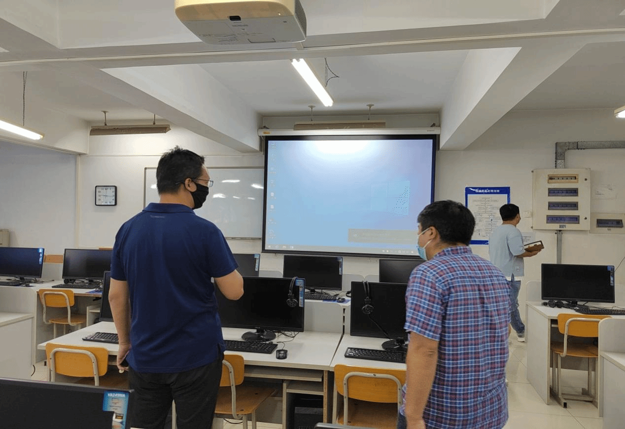 院長(zhǎng)、黨委書(shū)記丁煦生檢查多媒體教室設(shè)備情況
