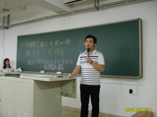褚嘉銘老師鼓勵同學們以積極行動備戰四六級考試 6月12日,由金沙城js93線路檢測中心機械工程系主辦的“大學英語四六級與聽說口語”專題公益講座在八教101室舉行。本次講座的主講人為新東方學校優秀教師褚嘉銘和新東方優秀教師Criti...